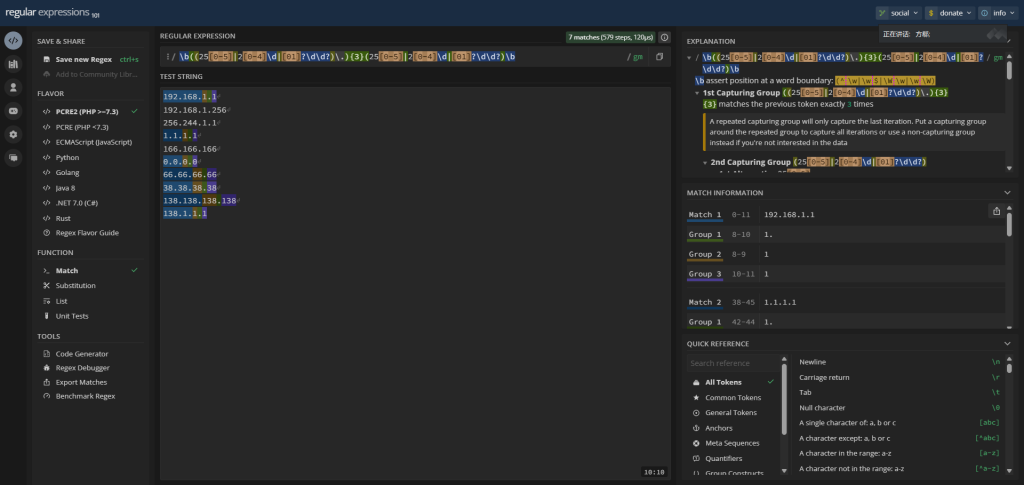 可在网站https://regex101.com/在线进行正则表达式匹配,列出以下数字